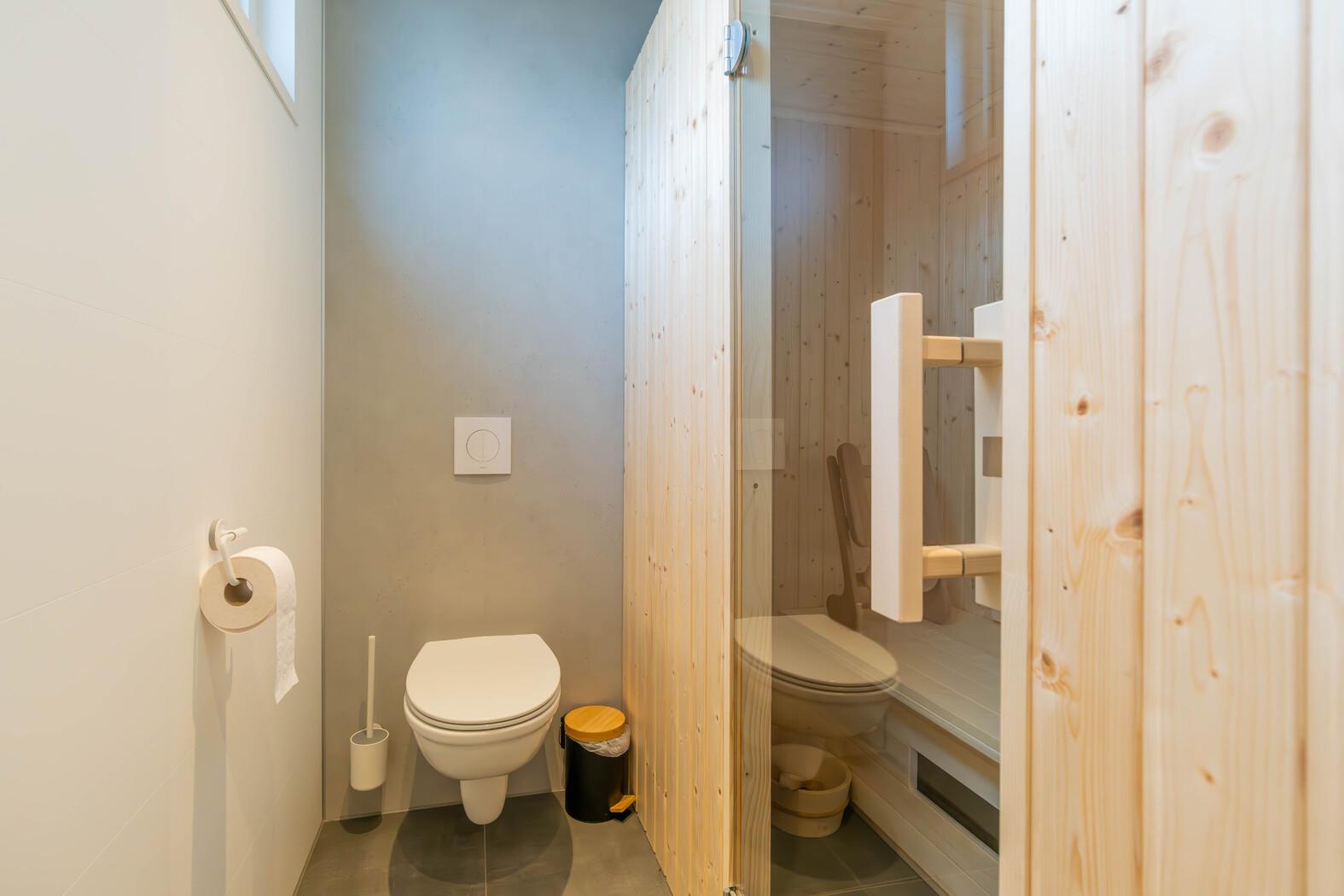 Dieses geräumige XL-Ferienhaus mit einer Fläche von 75 m² verfügt über 2 Schlafzimmer und ist für 4 Personen geeignet. Vom Flur aus haben Sie Zugang zu den Schlafzimmern, einer separaten Toilette und dem Badezimmer mit privater Sauna!