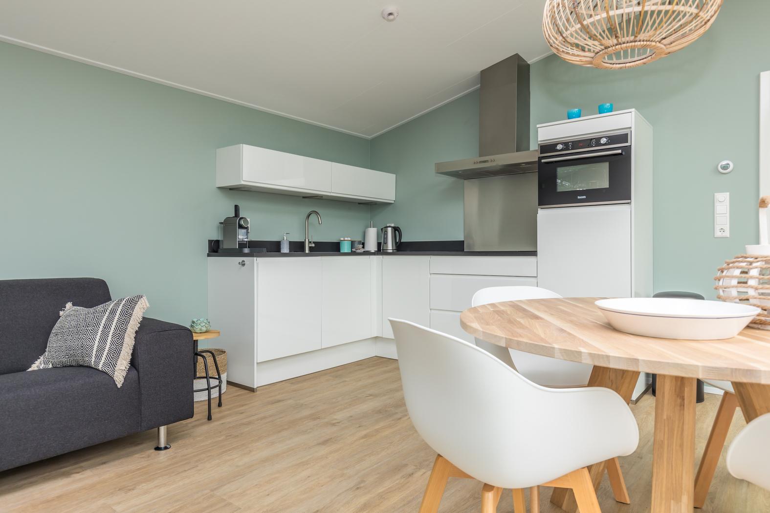 In diesem 4-Personen Ferienhaus haben Sie durch die großen Fenster direkten Kontakt nach draußen und können das ganze Jahr über die grüne Umgebung genießen. Das gemütliche Wohnzimmer mit Flügeltüren zur Holzterrasse hat einen Gaskamin für die kühleren Abende. Die Küche ist komplett ausgestattet mit Geschirrspüler, Kombi-Backofen und Kühlschrank mit Gefrierfach und verfügt über eine Senseo-Kaffeemaschine. Das Badezimmer hat eine geräumige Dusche mit Waschbecken. Im Flur befindet sich eine separate Toilette. Die beiden Schlafzimmer sind mit geräumigen Einbauschränken eingerichtet. Natürlich ist auch dieses Ferienwohnung mit Zentralheizung, Smart-TV und WiFi ausgestattet. Im Abstellraum befindet sich eine Waschmaschine. Haustiere sind in diesem Haus nicht erlaubt.