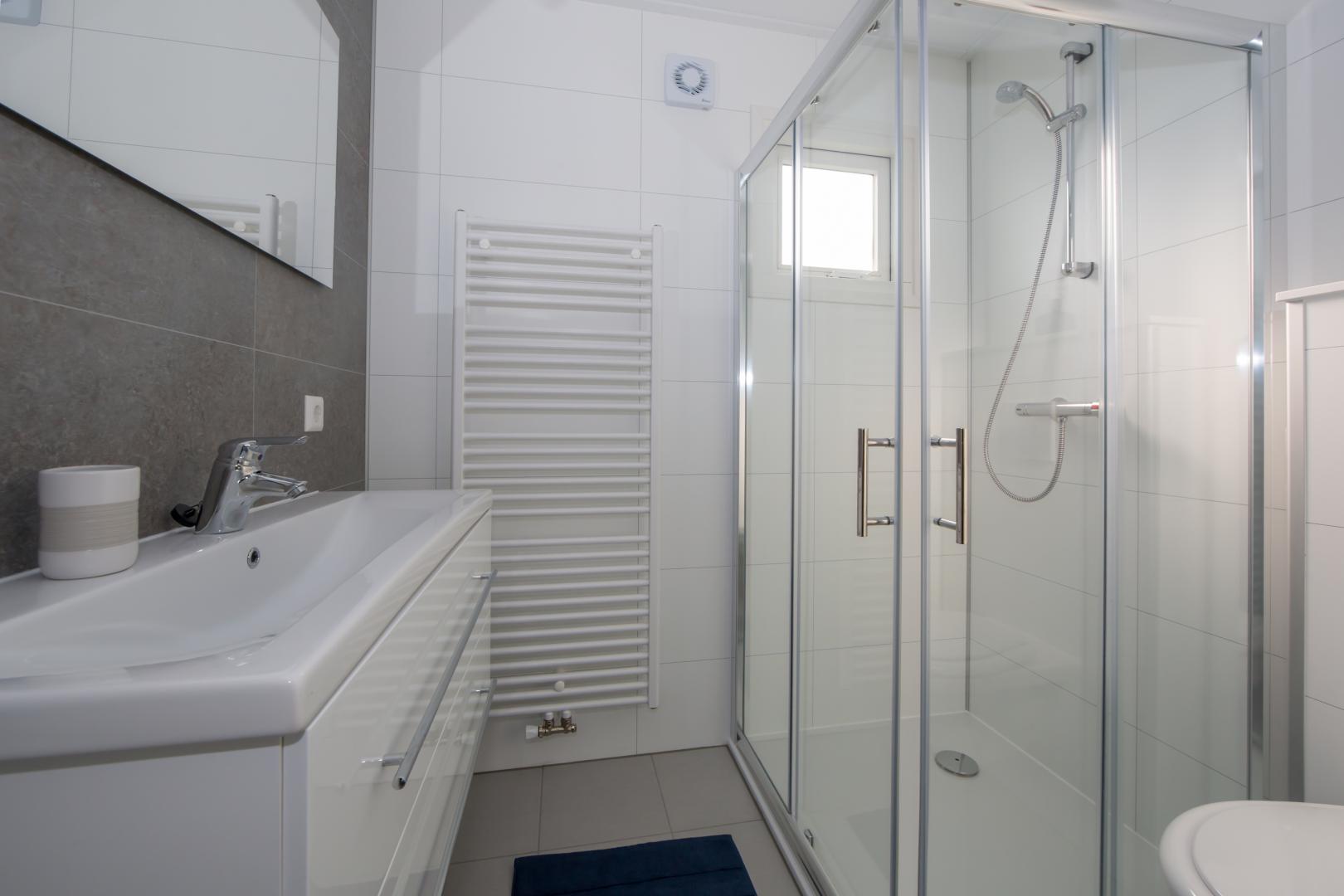 Es gibt zwei Badezimmer mit Dusche, Waschtisch, Toilette und Designheizkörper. Das Haus hat 3 Schlafzimmer: 1 Schlafzimmer mit einem Doppelbett, 1 Schlafzimmer mit 2 Einzelbetten und 1 mit einem Etagenbett für 3 Personen. Alle Schlafzimmer haben ausreichend Stauraum und natürlich gibt es Zentralheizung, TV und WLAN. Im Abstellraum findest du eine Waschmaschine und einen Trockner. Hunde sind in diesem Ferienhaus willkommen.
