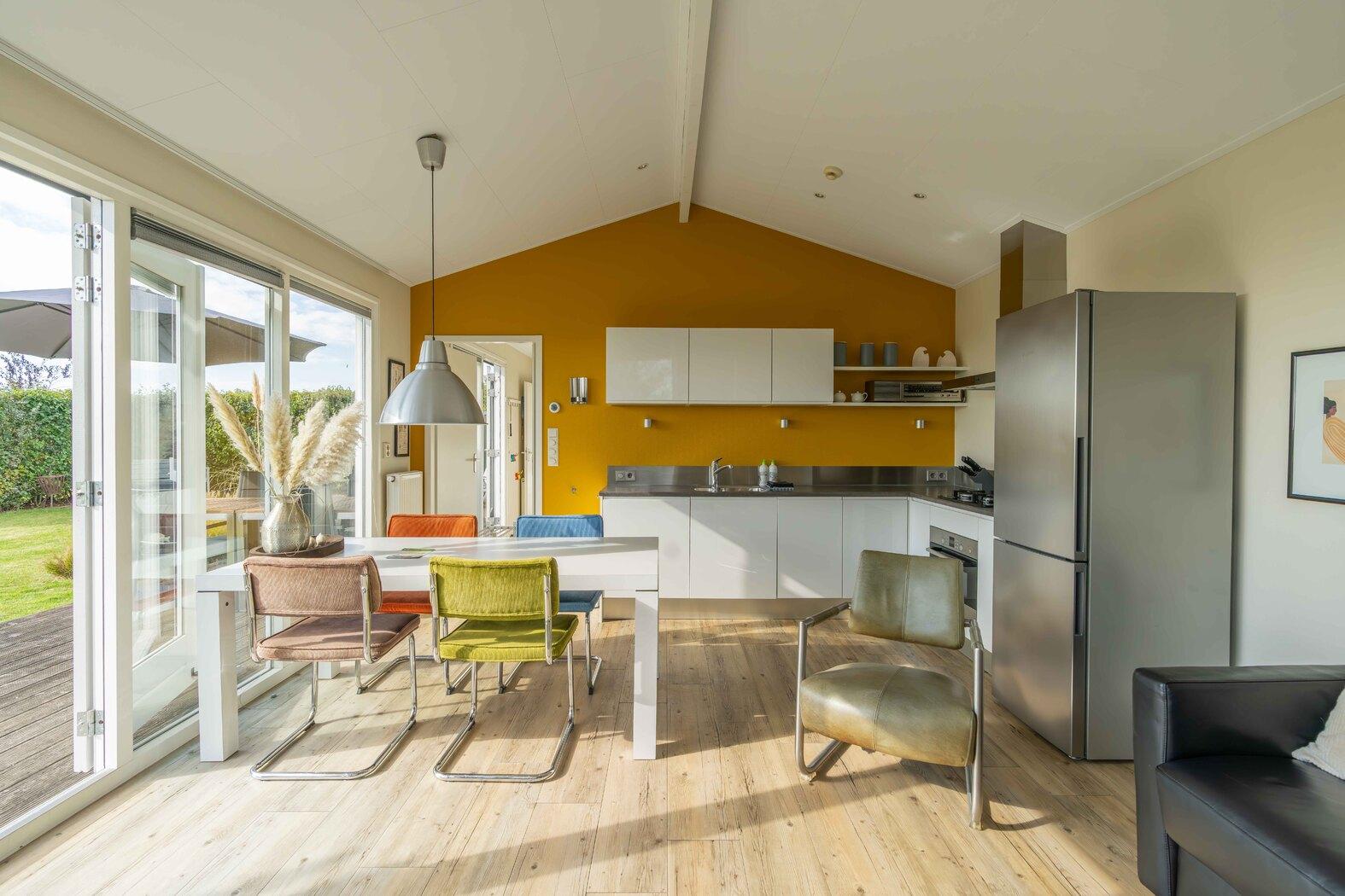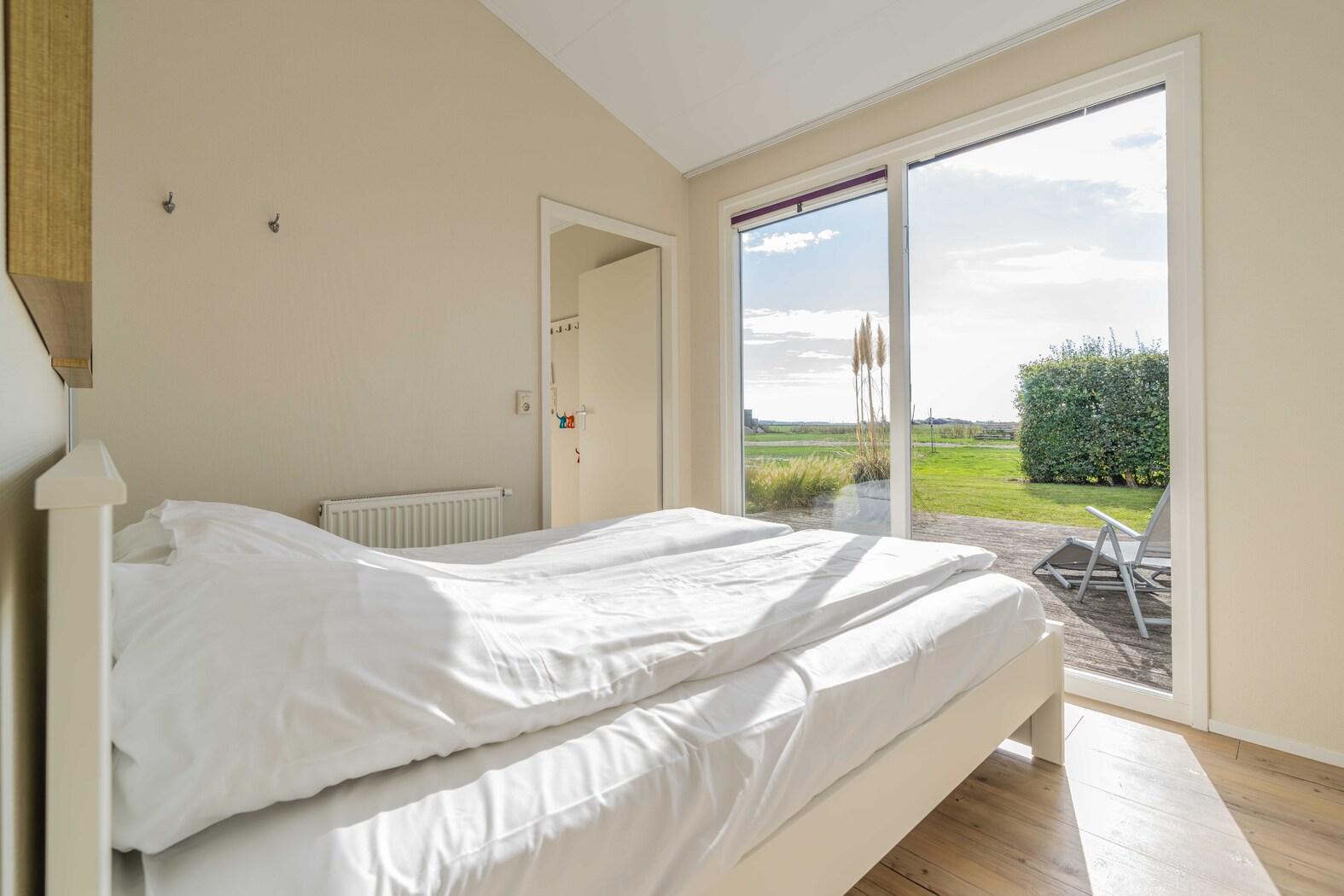 Dit 4 persoons vakantiehuis heeft een mooi uitzicht over de Schouwse polders en is gezellig ingericht. Het is gelegen op een groot perceel van 300 m2. De grote raampartijen brengen de natuur tot in de woonkamer en via de openslaande deuren stap je zo op het grote houten vlonderterras. De keuken is compleet ingericht met vaatwasser, combi-oven en koelkast met vriezer. Er zijn een Senseo, Nespresso en filter koffiezet apparaat. In de badkamer vind je een ruime douche met wastafelmeubel. Er is een apart toilet. De twee slaapkamers zijn uitgerust met inbouwkasten voor voldoende opbergruimte. De ene slaapkamer heeft een dubbel bed van 2x80, de andere slaapkamer heeft een bed van 1.40 breed. Uiteraard is het huis uitgerust met CV, smart TV en wifi. Er is een Weber bbq aanwezig om 's avonds gezellig te kunnen barbecuren. In de berging staan ligbedden die je buiten kunt zetten bij mooi weer. Honden zijn toegestaan. Vanaf 2026 is de tuin omheind.