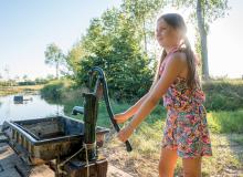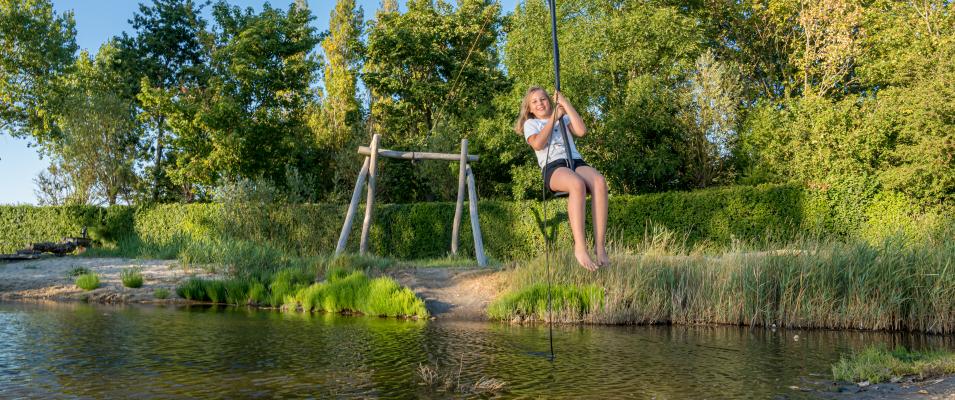 Bij de linker entree van het park ligt een echte waterspeeltuin waar kinderen zich helemaal kunnen uitleven. Spelen met waterpompen, het pontje naar de overkant bedienen of stoer over het water zoeven met het kabelbaantje, hier draait alles om avontuur, beweging en plezier.